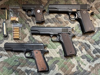 | 銃について詳しくありませんがだんだん好きになってきました。 2025年師走に入り、明和模型ガンショップにて人生初のミリタリーガバメントを購入しました。 お目当てはマルシンのヘビーウエイトM1911A1モデルガン完成品でなんと2万7千円もしました。 そしてBB弾が発射できるCO2ガスガンのバトンM1911A1も購入し、こちらは2万3千円もしました。 ついでにガバメントを小さくしたようなジュニアコルトのモデルガンも2万円で購入しました。 一昔前に比べ値段は爆上がりし気軽には買えません。待っていたらいずれ買えなくなるでしょう。 これまでミリガバは全く刺さらない銃の一つで、ベレッタこそ銃の極みだと思っていました。 ベレッタM9が人生初モデルガンで2019年に手に入れました。多少発火したもののしばらく眠らせたままです。 つい最近、思い出したように息子がおもちゃの鉄砲で遊び始めたのをきっかけに昔買ったエアコキを引っ張り出してきました。 多分2008年ぐらいに買ったエアコキでマルイ10禁のクーガーと18禁のP7M13があります。 残念ながらP7M13は壊れていたので、代わりにマルイM92Fの18禁を手に入れて子供と一緒に部屋撃ちし始めました。 物は試しに韓国製ACROのベレッタM1934とFN1900のちょっとお高いエアコキも買ってみました。 懲りずにスライドストップのかかるクラウンの10禁M9も手に入れて充分満足していました。 ところがマルイの広告写真を見ていたら、あの性に合わないミリガバが急に良く見え始めたのです。 ベレッタの優雅な芸術的造形美とは対照的に無骨で直線的なデザインは素っ気無く、オープン時の見た目も色気がありません。 それが逆に良く見え始めると途端にグイグイ引き込まれて、実物を手にしたい欲望が抑えきれず一気に買ってしまいました。 銃は撃ってナンボ汚れてナンボ、とことん使い倒してボロボロになるまで使い倒すつもりです。 |
