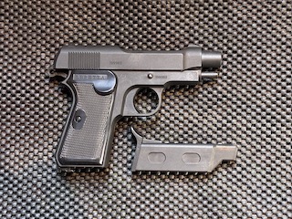 ACROベレッタM1934![]() 給弾不良が多発します。マガジンのストッパーにアソビがあるのが原因かもしれません。 マガジンのベロを下方に押さえつつグリップを握り込んでコッキングすると解消されます。 さらに中身のどこかの不具合でコッキングと同時に暴発してしまう危ないポンコツです。 ACRO FN M1900ポンという間抜けな音で発射します。トリガーの引きが固く狙ったところに当たらないポンコツです。 マルイM8000 クーガー 10禁
