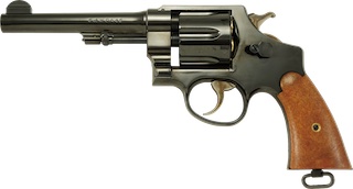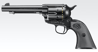持っていません。部屋撃ち用でいずれ欲しくなるような気がしますがシャカシャカマガジンとアンダーレイルが気に入りません。 @ SAA エアコキ?ガスガン?モデルガン?![]() 持っていません。45口径つながりで唯一のリボルバーとして一挺欲しいところです。 これもミリガバ同様変な形に見えて最初は受け入れ難い銃でした。リボルバーなら次元大介のM19と決めていました。 ミリガバの影響で嗜好もガラッと変わったせいか、とたんに良く見え始めました。不思議なもんですね。 @ タナカM1917 S&W U.S.ミリタリー5.5インチ モデルガン![]() 持っていません。.45ACP弾のリボルバーでミリガバファンなら誰もが知ってるんじゃないでしょうか。 ハーフムーンクリップを使ったオート弾の装填やC-Tecの.45オートリム弾の直接装填とかマニアックで地味に楽しそうです。 形状的にはごく見慣れた拳銃ですが果たしてNフレームで大型リボルバーという選択は吉と出るんでしょうか。 |